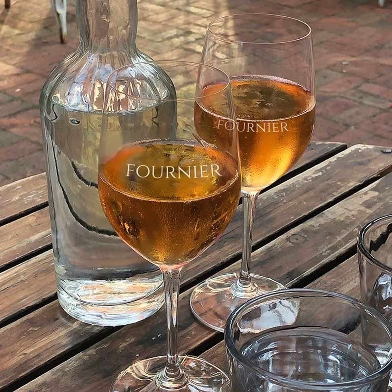 The dry farm cider is orange-amber in color, clear and sparkling in appearance, with a fresh and aromatic nose.