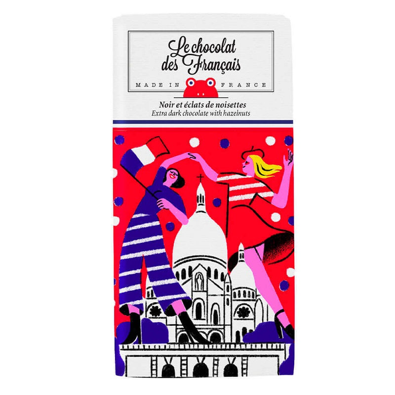 Are you ready to waltz, tango or salsa? Our Sacré-Coeur organic chocolate bar will make you swirl with pleasure thanks to the intensity of our dark chocolate, while our hazelnut chips will make you crunch with happiness.
