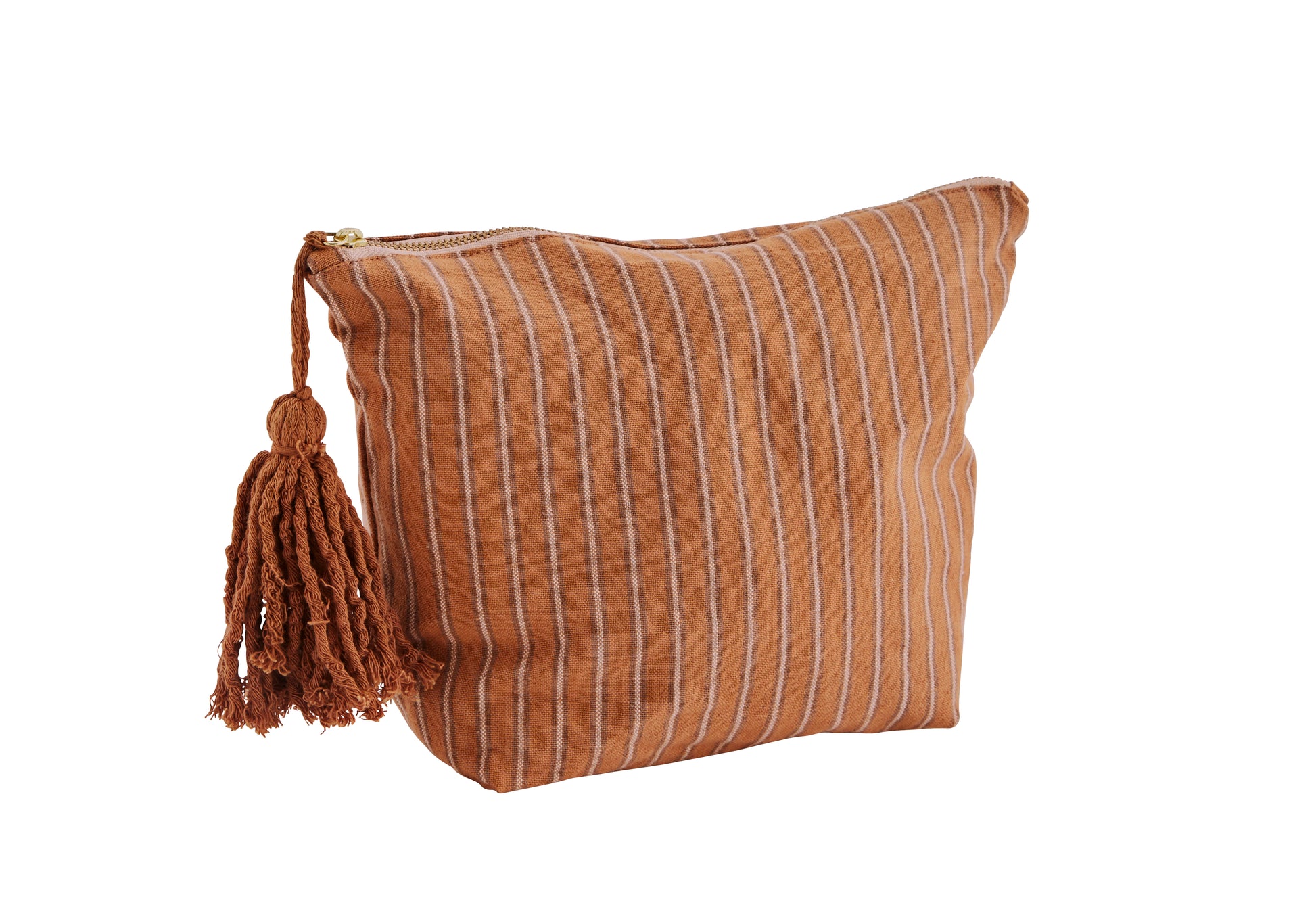 Dusty Orange striped washbag with tassel