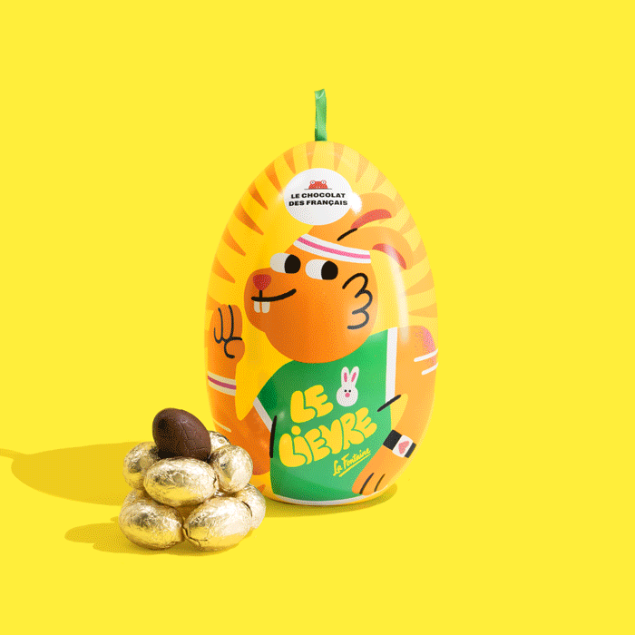 Discover our Easter egg illustrated with the colors of La Fontaine's fable "The Hare and the Tortoise"... And inside this delightful treat? Delicious little dark chocolate Easter eggs with a hazelnut gianduja filling and crispy crepe pieces. Utterly addictive! Learn more
