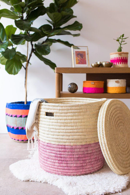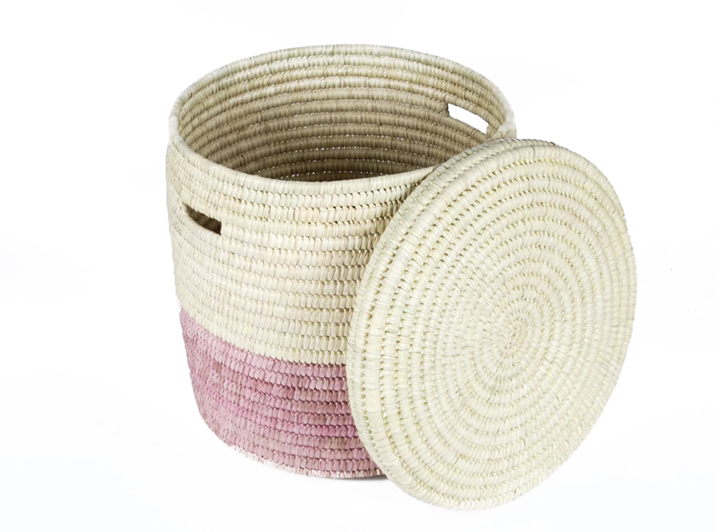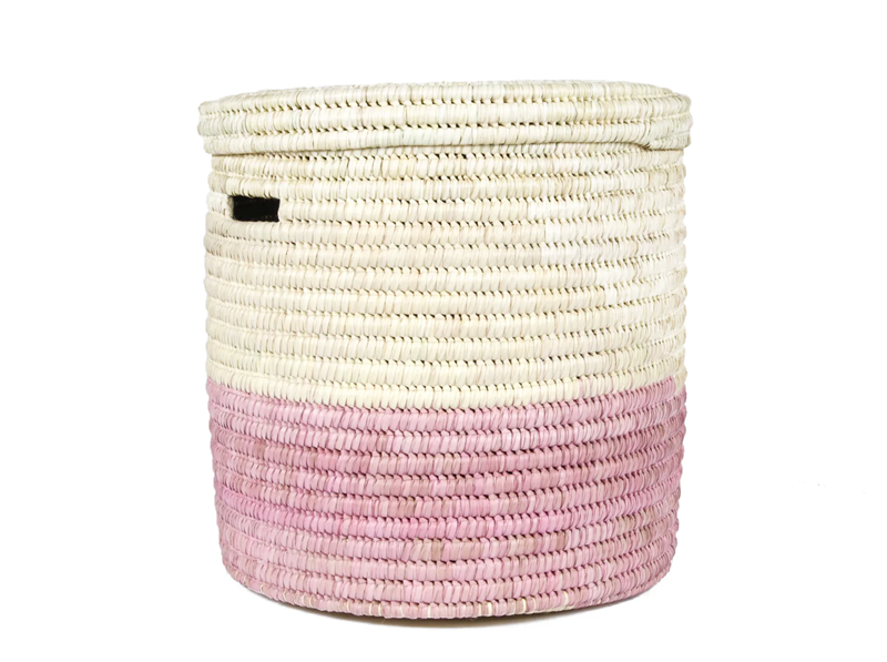 Meticulously hand woven, the HAPA lidded laundry basket boasts a raspberry pink and white colour block design, made from tightly woven, hand-dyed doum palm leaf. This collection comes in three sizes.