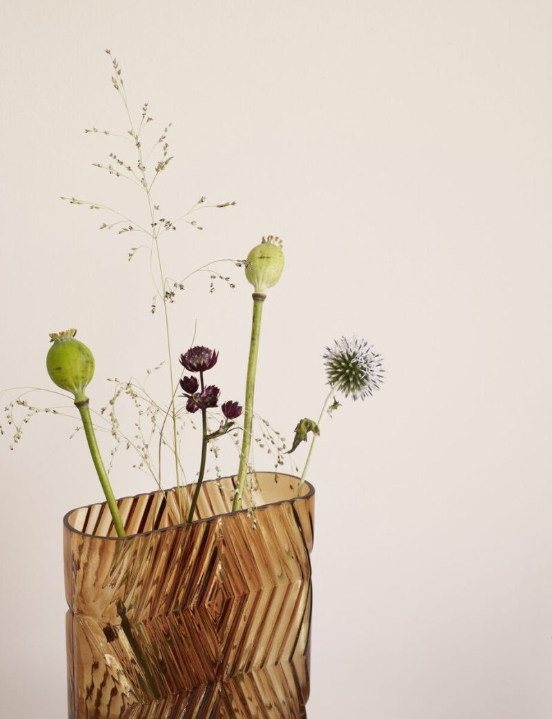 This amber vase brings a touch of elegance to any room. You can place the vase on a dining table or in the window with or without flowers. This product is handmade and may therefore variate.