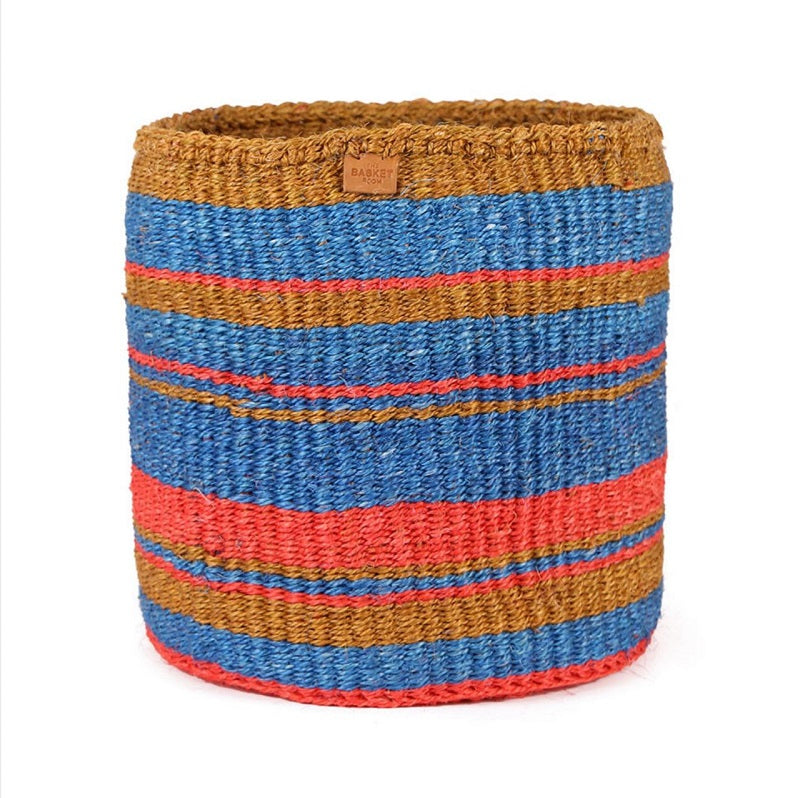KAMATA:Teal, Gold & Red Stripe Woven Storage Basket