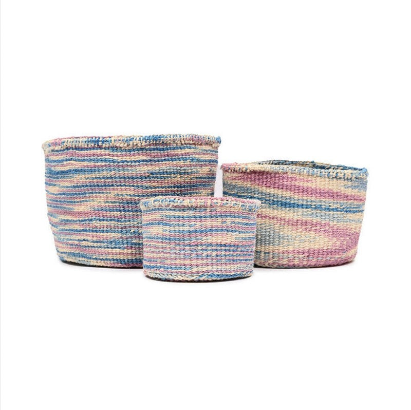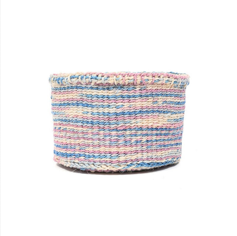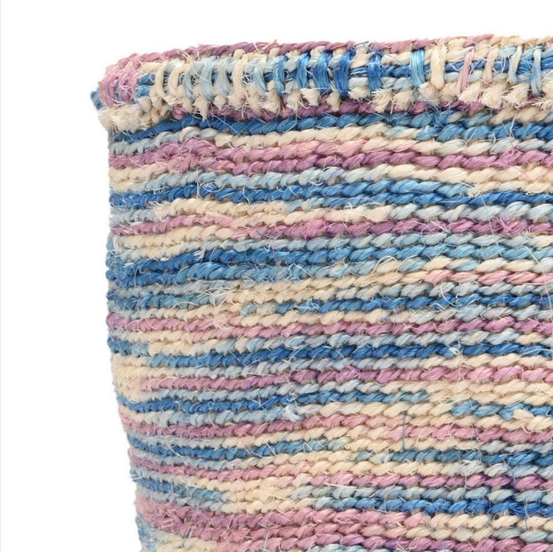 With its dreamy swathes of tranquil blue, baby blue and vintage pink, KWENYE is a woven storage basket of sweet bubble gum dreams! . They’re produced in three handy sizes, woven from indigenous sisal grass in rural Kenya. Use your woven storage basket for keeping your hair accessories and toiletries organized, or fill with children’s toys, remote controls and gloves and hats. These round sisal baskets also make beautiful woven planters for your houseplants – and wonderful new home gifts. Wherever and however you choose to use your new woven basket it is sure to bring a pretty pastel splash of Kenyan colour and craft to the home.