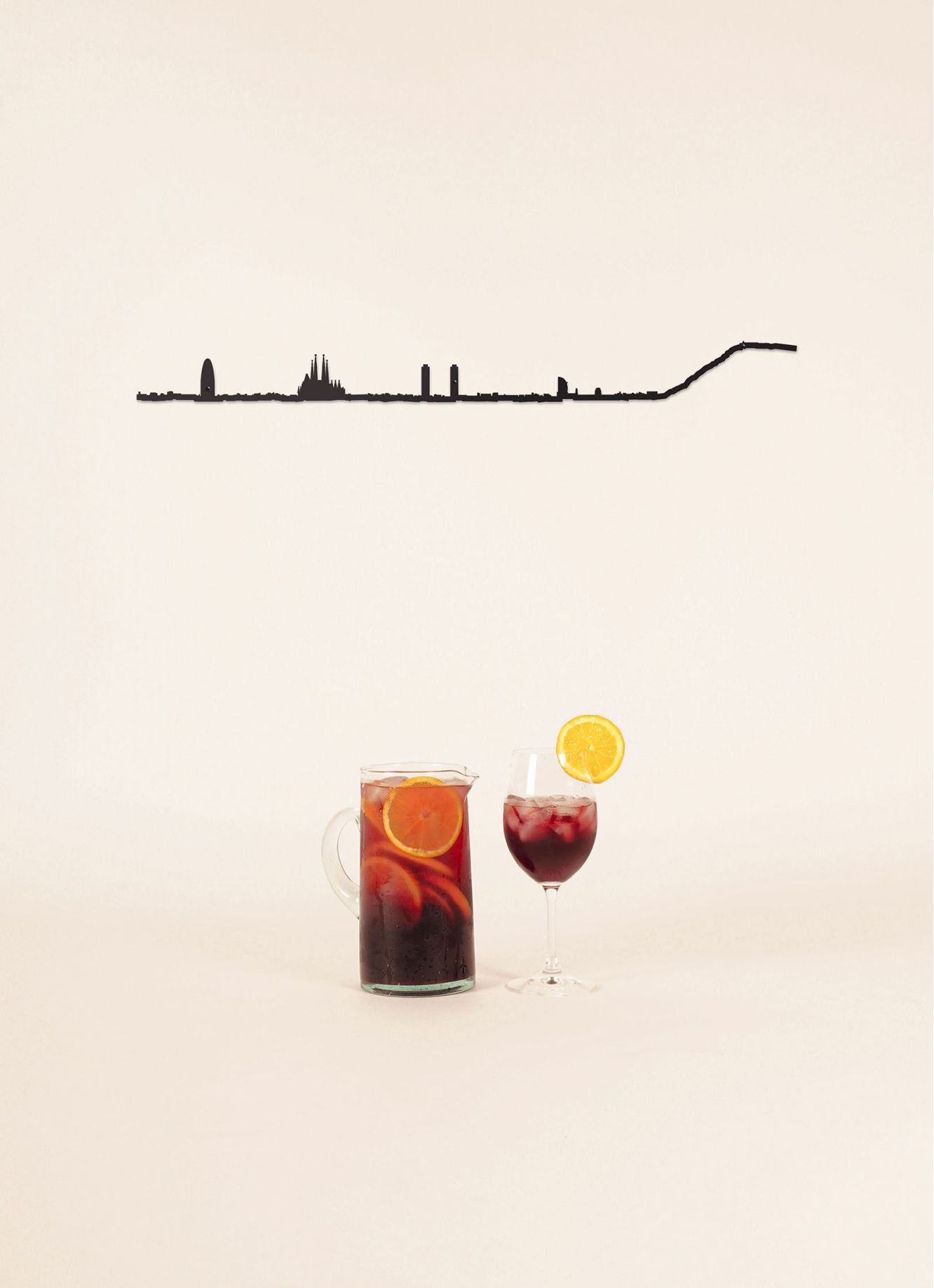 We have depicted the skyline of Barcelona as seen from the heights of Guëll Park.