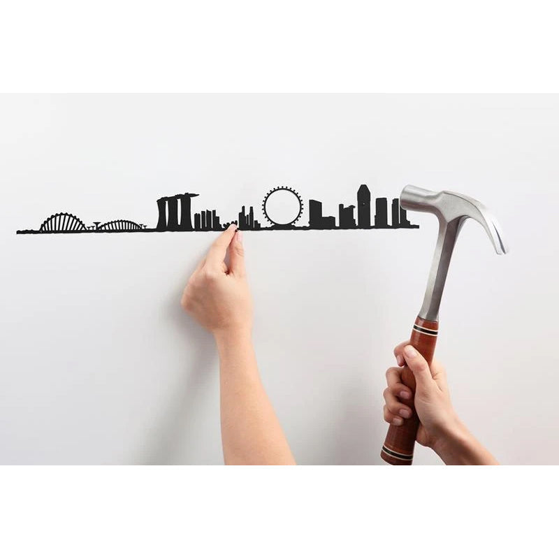 Silhouette of Singapore as seen from the banks of Marina Bay.