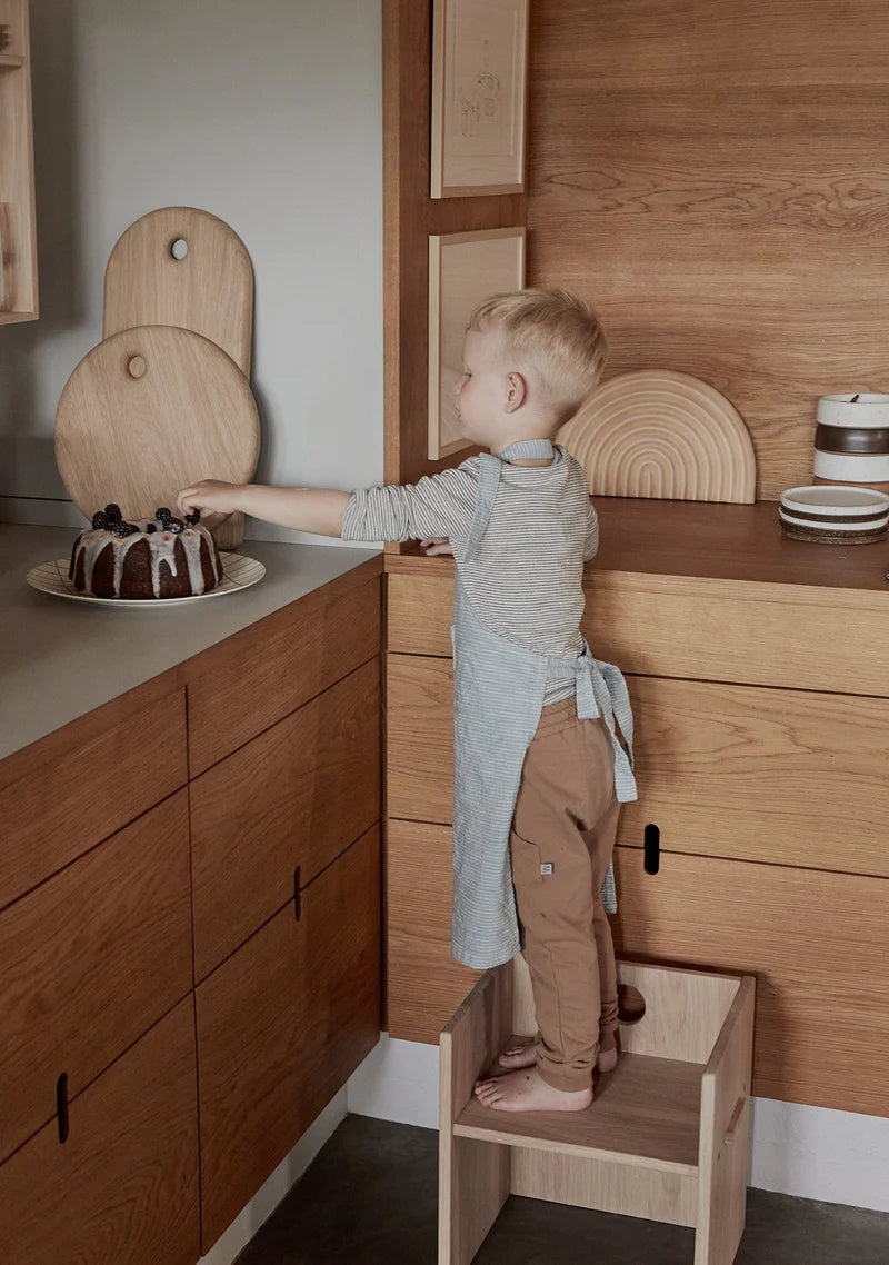 Yumi Cutting Board is made of FSC certified oak. The cutting board has a modern and aesthetic expression with soft and rounded edges. Use the cutting board conveniently or serve spanish tapas for the guests. The Yumi Cutting Board can stand on the kitchen table or hang on the wall.
