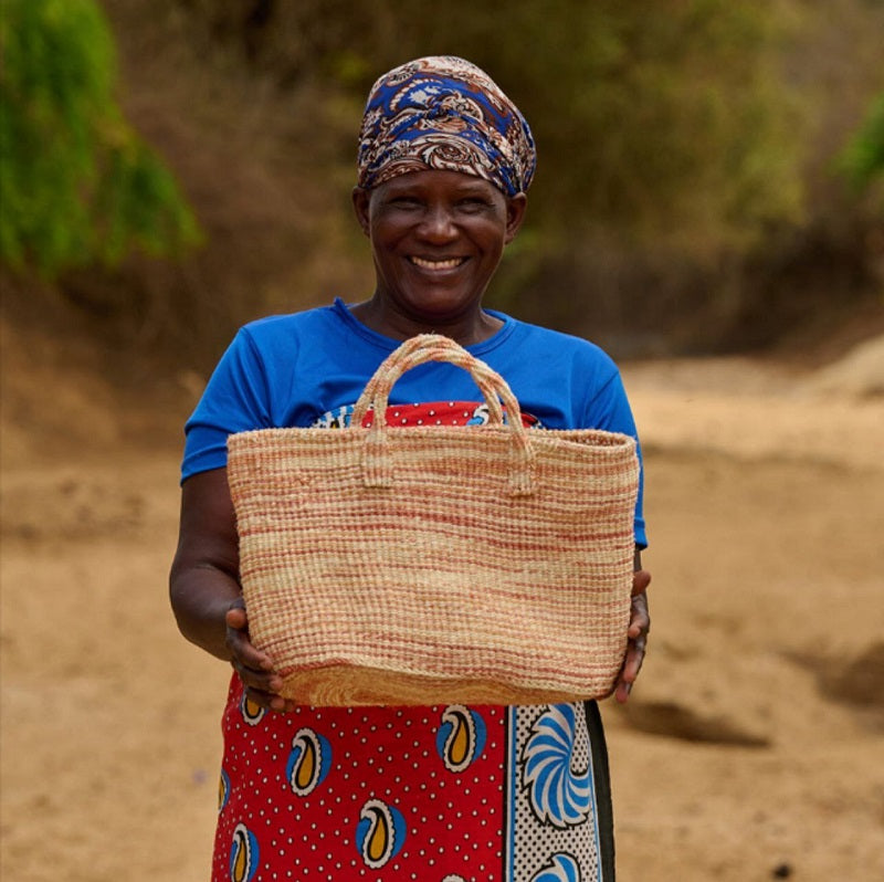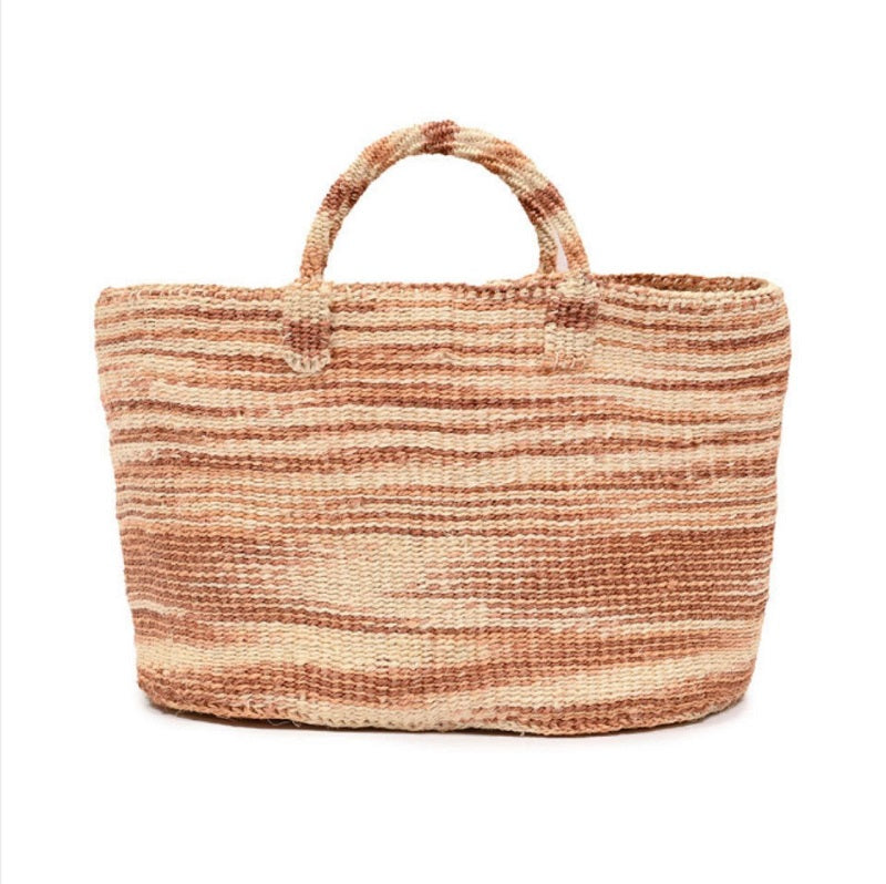 MGANDO is a tie dye woven shopper made from Kenyan sisal, in earthy tones of baked tile and dust. With its twisted sisal carry handles, this carry-all is leather free. Use yours as an everyday handbag with room to pack for overnight stays, grocery shopping and trips to the gym – they come in two handy sizes.