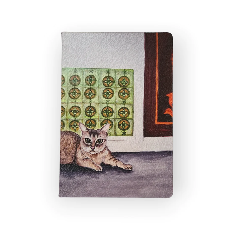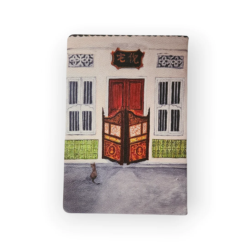 It features Our Singapura Cat, lounging at the entrance of Paranakan House, distinguishable by the Pintu Pagar, the "fence door" which is accompanied by the two windows on the side. Typically a half-height door, allowing ample light and air into the home, which also acts as a fence door that allows for privacy and security for the families residing in the shophouse.