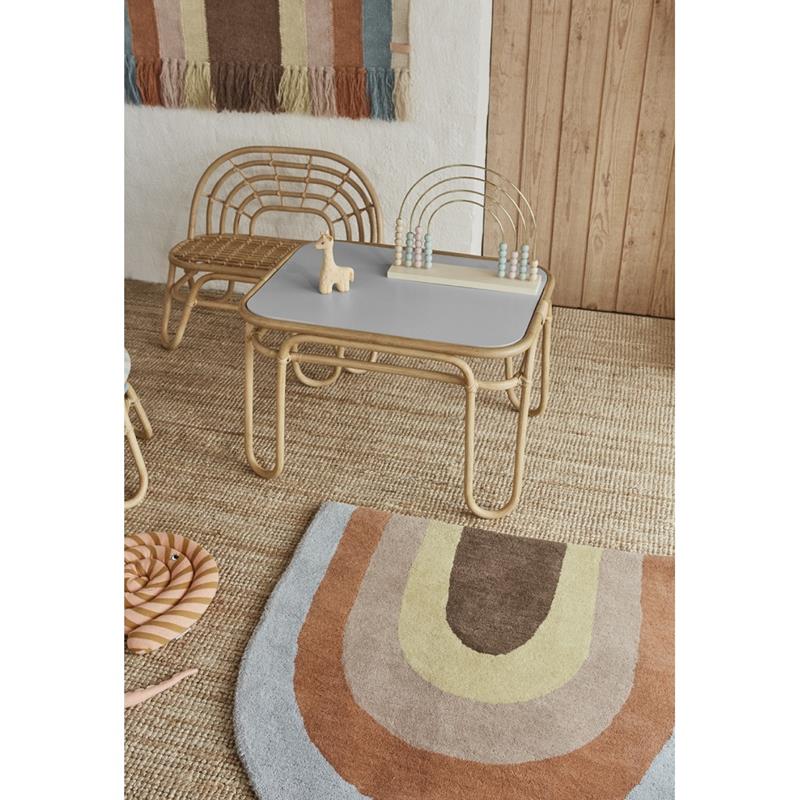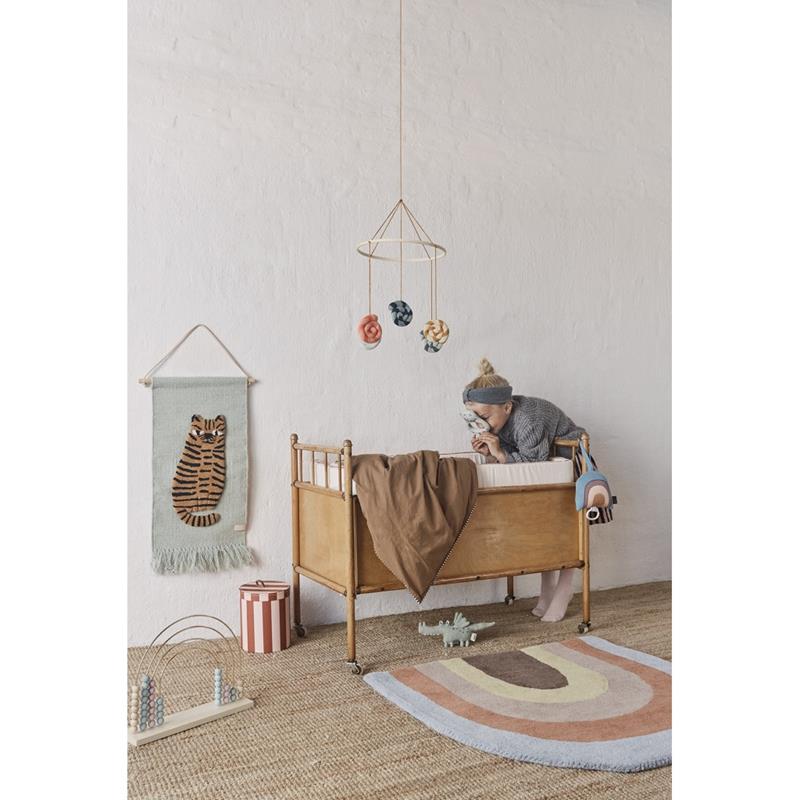 The Rainbow Rug is a soft and warm rug that fits perfectly in the children's room, teenage room, bathroom or other room in the house. The well-known rainbow design from OYOY creates cozyness in the room with its round and organic shapes. The Rainbow rug is made of wool and cotton, and woven in warm colors that fit well with the Nordic décor.