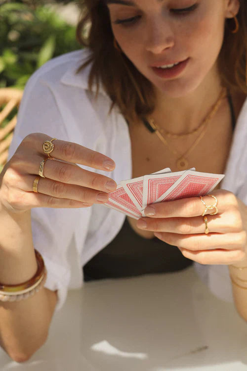 Pretty shell-shaped ring with hammered finish. Perfect for matching with earrings! Adjustable 3 micron gold-plated ring.